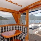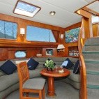 Originally built as a luxurious private yacht in 1984, she underwent major renovation in 2003 to update the cabins and all safety systems. Accommodation on board consists of eight double cabins (mainly with twin upper and lower bunks, some with double bunks) plus three communal heads with hot showers, a large, comfortable lounge with an extensive library. She is equipped with all the safety equipment, electronic navigation aids, and features you would expect from a vessel of her standard.