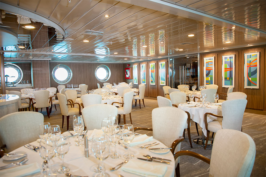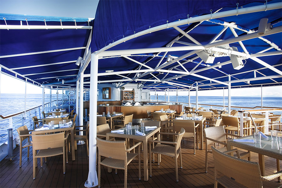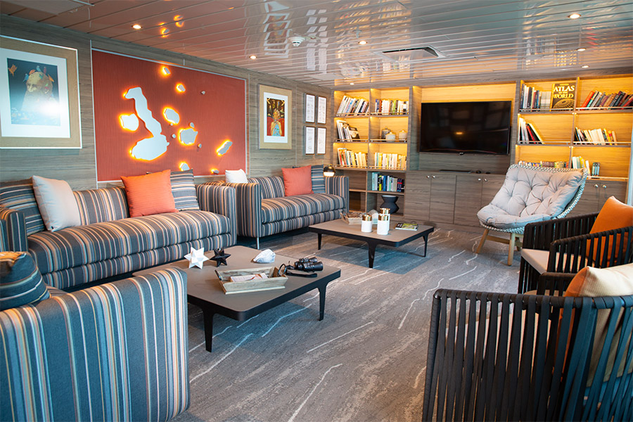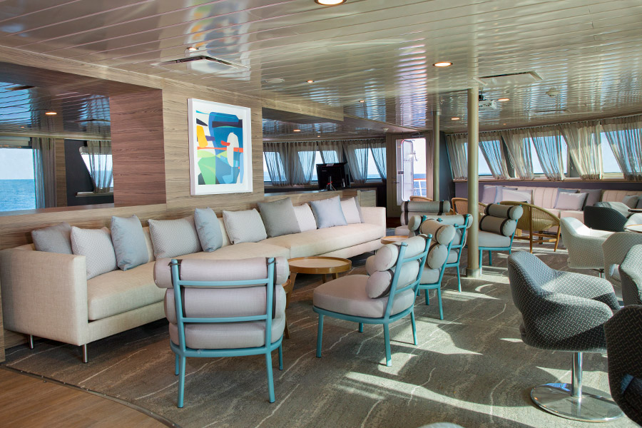 La Pinta has a sitting room, a well-stocked library, lecture area with cinema screen, inside and outside dining areas, and a choice of bars. It’s a family-friendly boat, with both triple and interconnecting cabins. She also carries a glass-bottomed boat and sea kayaks, and the crew includes four naturalist guides.