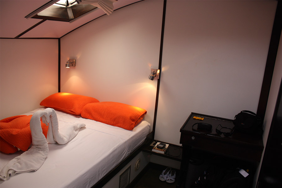 The Nemo II accommodates a maximum of 12 passengers in six cabins, each with air-conditioning, a porthole and a private bathroom. Cabins vary in design, and offer the choice of a lower double berth, a triple cabin with a lower single and an upper double berth, or single bunks.