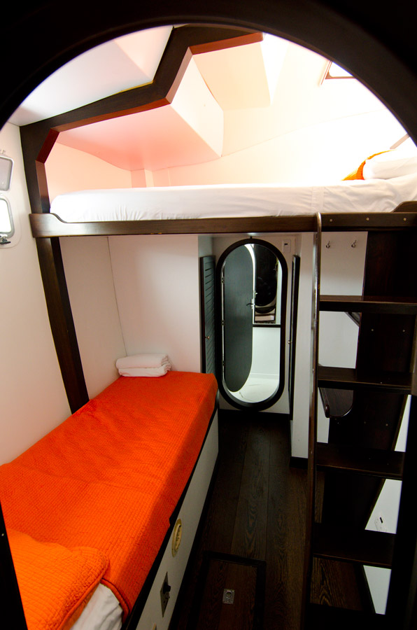 - Beds: 1 lower double berth, 1 lower single & 1 upper double berth, 2 upper berths, or 2 single bunk beds