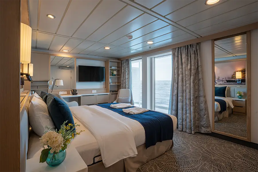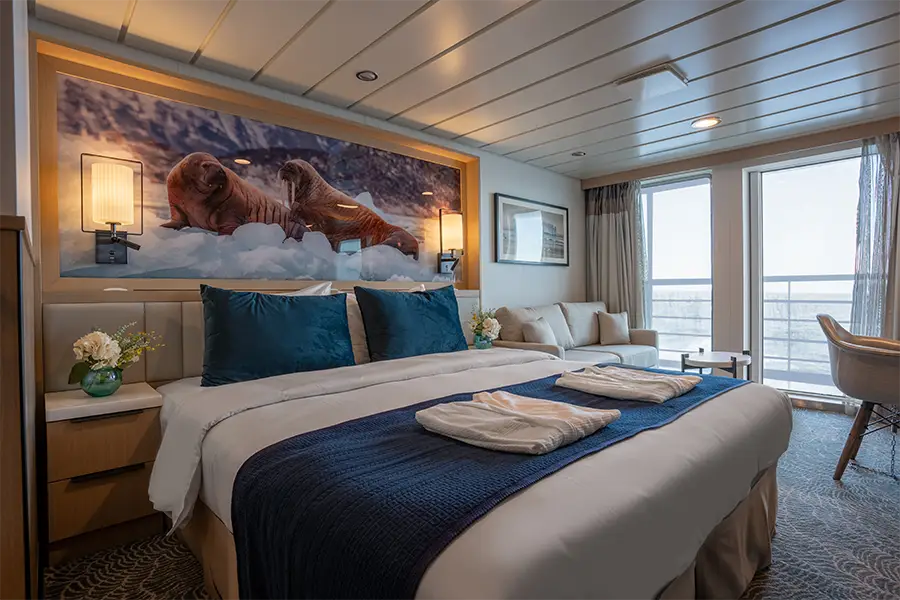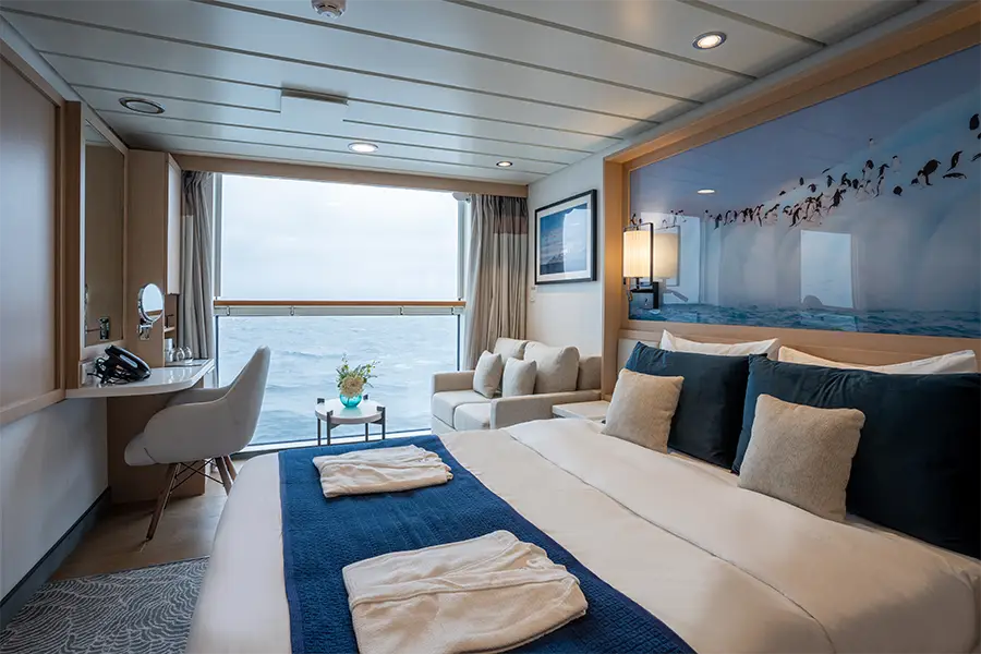Accommodation aboard the Ocean Albatros is designed for comfort, with various cabin options to suit different preferences. The majority of staterooms feature private balconies, offering uninterrupted views of the ever-changing scenery. Each cabin is thoughtfully designed with modern furnishings, independent temperature controls, and luxury toiletries.