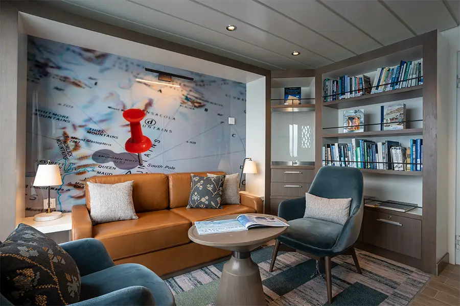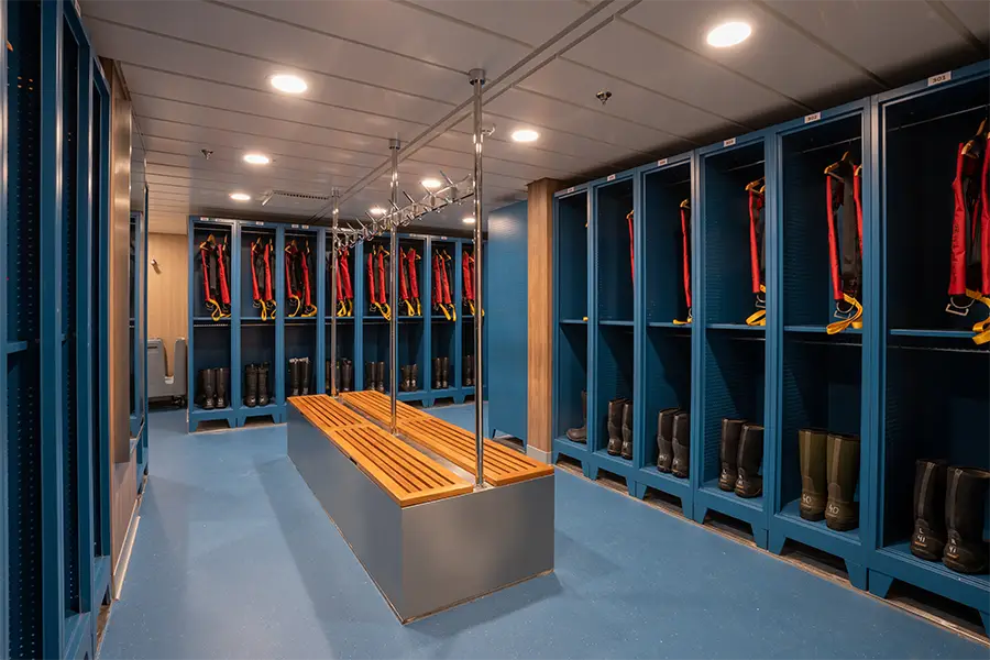 The ship’s expansive observation decks and hydraulic viewing platforms ensure unparalleled opportunities for wildlife spotting and photography. A well-equipped library provides a quiet space for relaxing, while the large heated mudroom allows for easy ship to shore excursions.