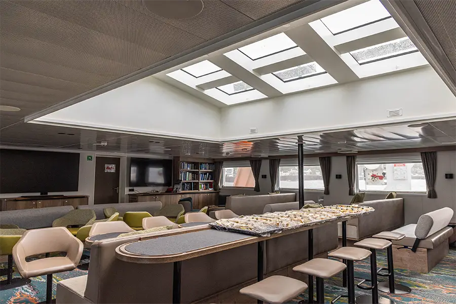 Whether navigating icy channels in Antarctica, exploring remote islands in the Arctic, or watching for whales, seabirds and other wildlife along vast polar coastlines, Ortelius offers a true expedition experience. Guests enjoy comfortable common areas, dedicated lecture spaces, and the camaraderie of small-ship travel, all designed to enhance your polar adventure.
