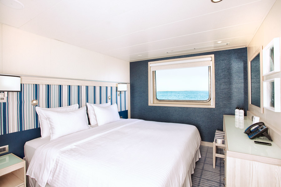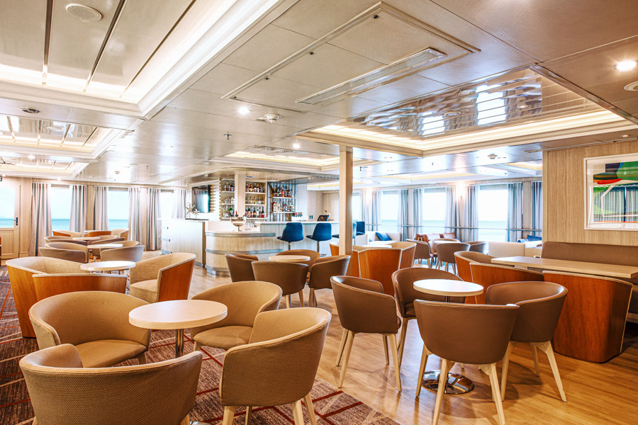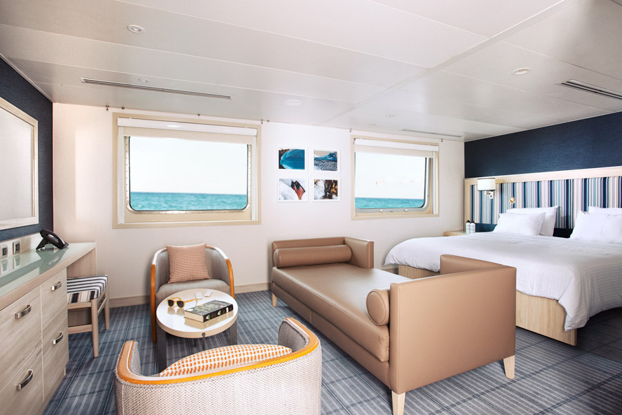 Cabins vary from explorer twin cabins, to Darwin suites with private bathrooms (shower and toilet) and lower berths. The Santa Cruz II is air conditioned throughout, and facilities across the five decks and include indoor and outdoor dining, a lounge bar, library, a gym and two hot tubs overlooking the ocean.