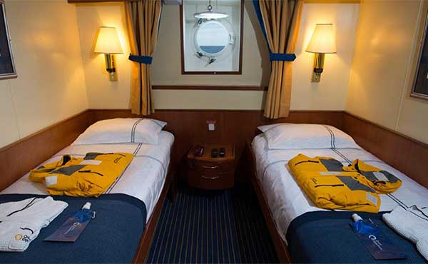 The Ocean Adventurer is equipped with two Rolls Royce engines, which offer good fuel efficiency, minimising its carbon footprint and giving a cruising speed of 12 knots in open water.