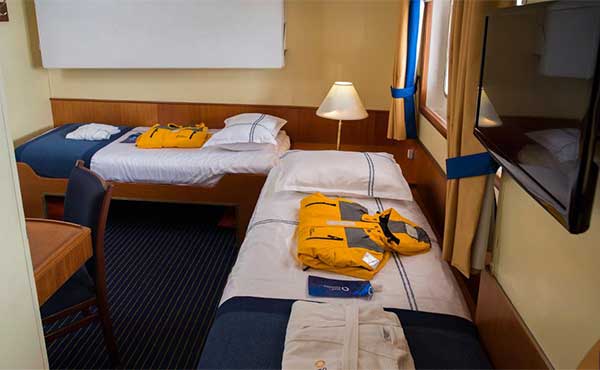 This vessel has the highest ice-class rating (1A) making it suitable for navigation in solid one-year sea ice as well as loose multi-year pack ice. The Ocean Adventurer can accommodate up to 132 passengers in a high-level of comfort, with all cabins en suite. The ship is accompanied by 87 highly-trained staff and crew, which includes experienced nautical crew members, hotel staff, expedition specialists and a medical doctor.