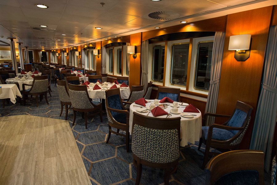 A characteristic of the Ocean Adventurer which really separates it from other expedition ships is the large amount of outdoor deck space, which makes observing wildlife that much easier. The outdoor space is split over four decks from the Main Deck all the way to a viewing deck above the bridge.