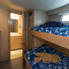 The Turks & Caicos Explorer II is a custom-designed liveaboard dive boat, accommodating 20 guests in 10 well-appointed cabins. Split across three decks, two Master Staterooms are located on the Upper Deck, accessed by an exterior walkway, and these feature a queen bed and window. There are five Main Deck Staterooms with either queen or twin bed configuration and window, while a further three Lower Deck Staterooms offer an upper and lower bunk with porthole. Linen, towels and toiletries are provided. Soft luggage is recommended for storage purposes.