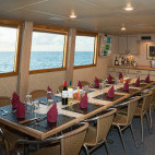 Each tender comfortably accommodates ten guests, with cushioned bench space, splash rails to minimise spray, covered bow to protect dry articles and camera, and an abundance of under seat storage for snorkelling gear and other equipment. The seating area is protected from the sun, and heavy-duty ladders facilitate easy re-entry into the tender after in-water encounters. The tenders are environmentally-conscious and the quiet engines eliminate exhaust fumes and minimise acoustic disruption, providing a more comfortable experience for guests and the whales.