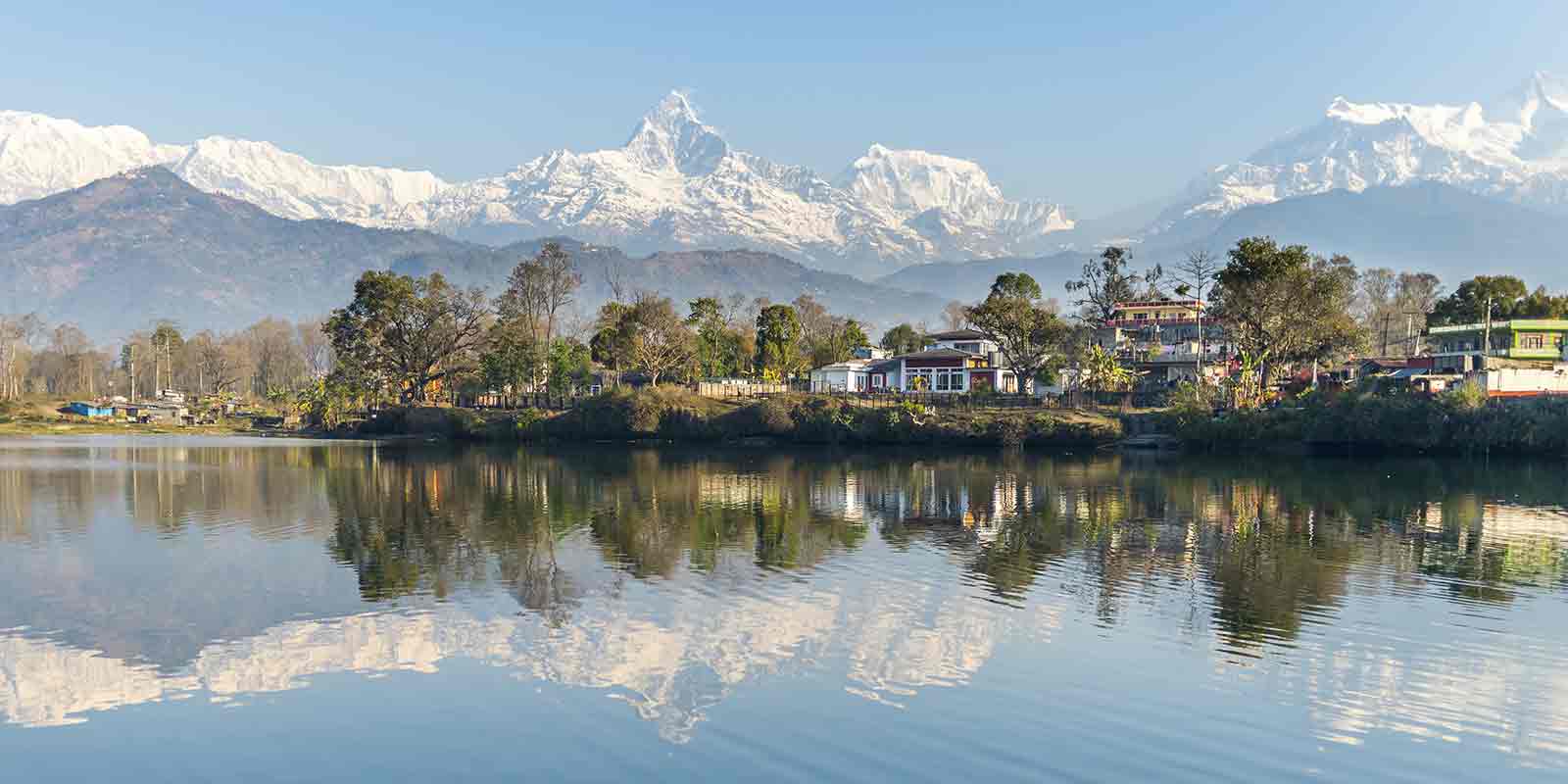 Lying 200 kilometres to the west of Kathmandu, Pokhara has the fish tailed summit of Machhapuchhre, at 6,977 metres, as a backdrop.